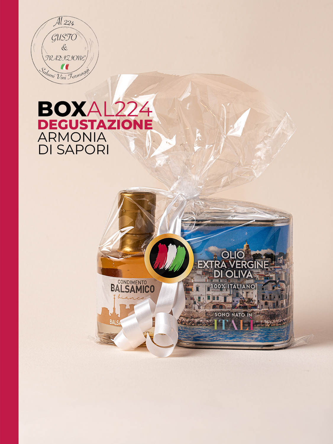 La BOX AL224 Degustazione | Armonia di Sapori è un piccolo scrigno di eccellenze pensato per chi ama la semplicità autentica e i sapori genuini della tradizione italiana.