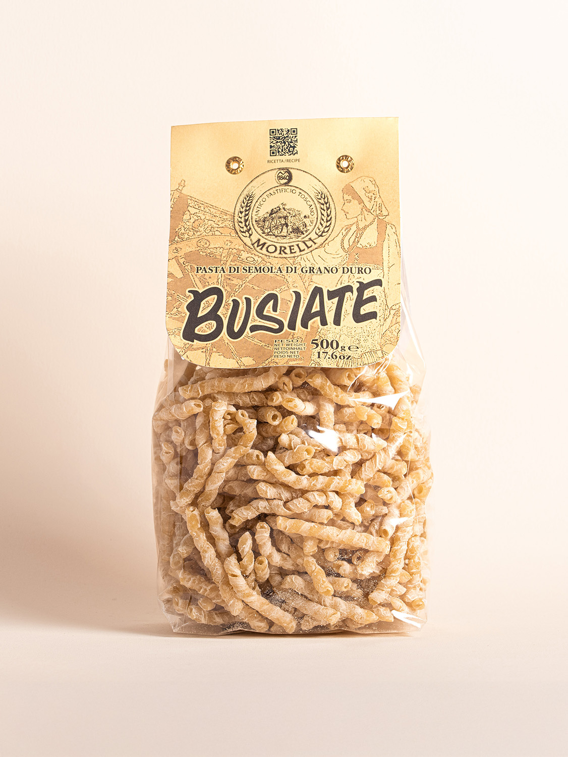 Le Busiate del dell’Antico Pastificio Morelli sono una pasta artigianale realizzata con semola di grano duro e acqua, secondo la tradizione del pastificio toscano fondato nel 1860.