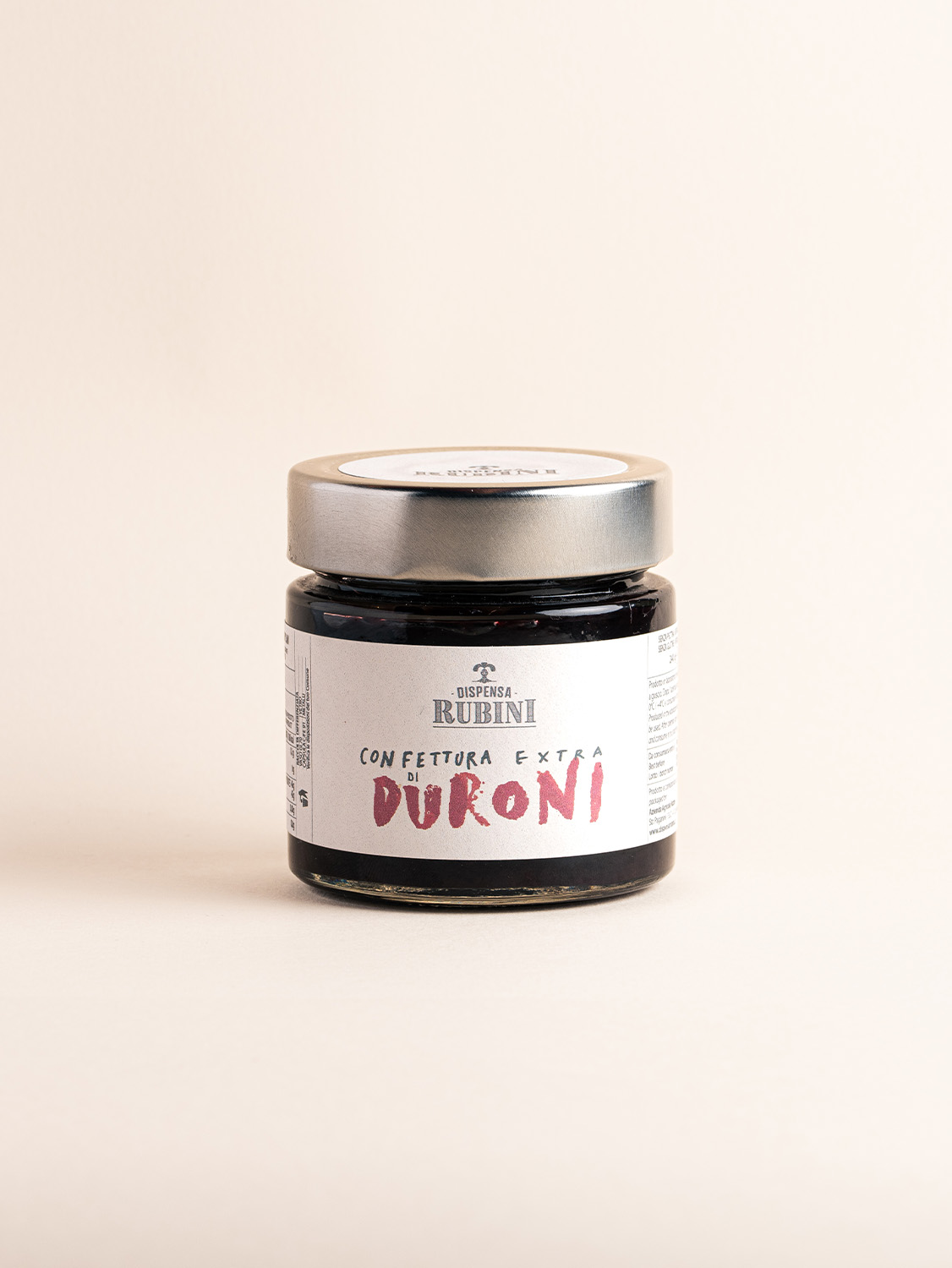 Confettura extra artigianale di duroni Dispensa Rubini. Preparata con ciliegie dolci selezionate, senza conservanti, dal gusto intenso e naturale.