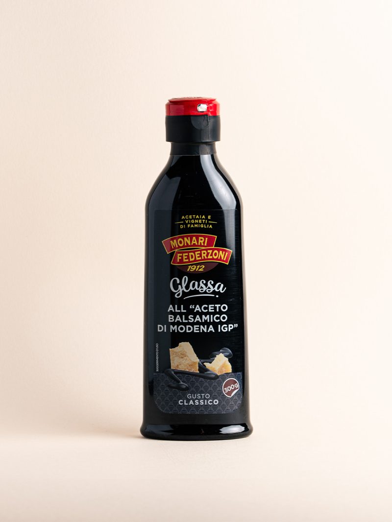 • Ingredienti: mosto d’uva concentrato, Aceto Balsamico di Modena IGP, amido di mais modificato, succo di limone, aroma naturale