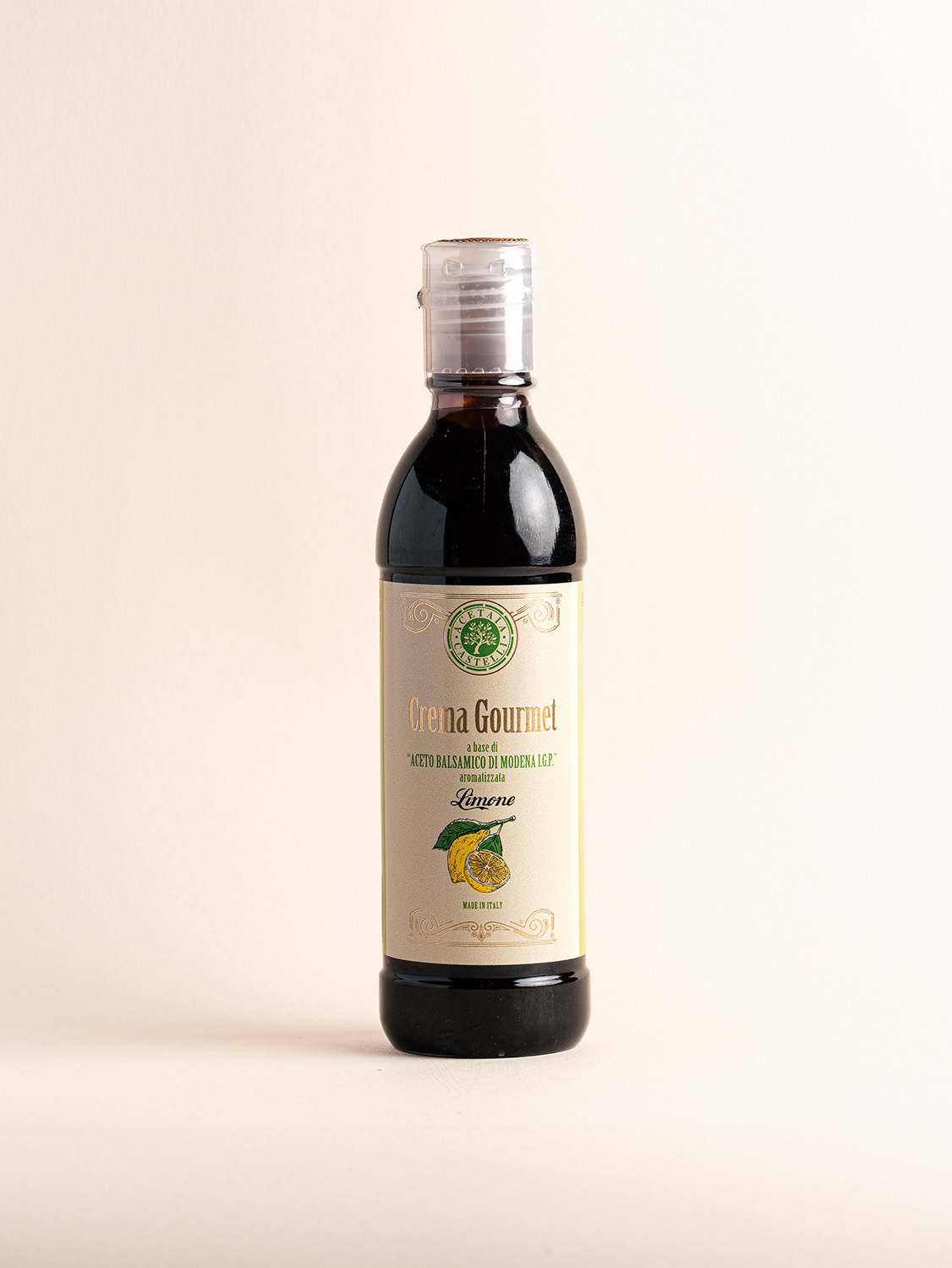 Grazie alla sua consistenza densa e vellutata, questa crema sprigiona un perfetto equilibrio tra la dolcezza avvolgente del balsamico e la freschezza agrumata del limone. È confezionata in un pratico flacone squeeze da 250 ml, che consente un dosaggio preciso e creativo.