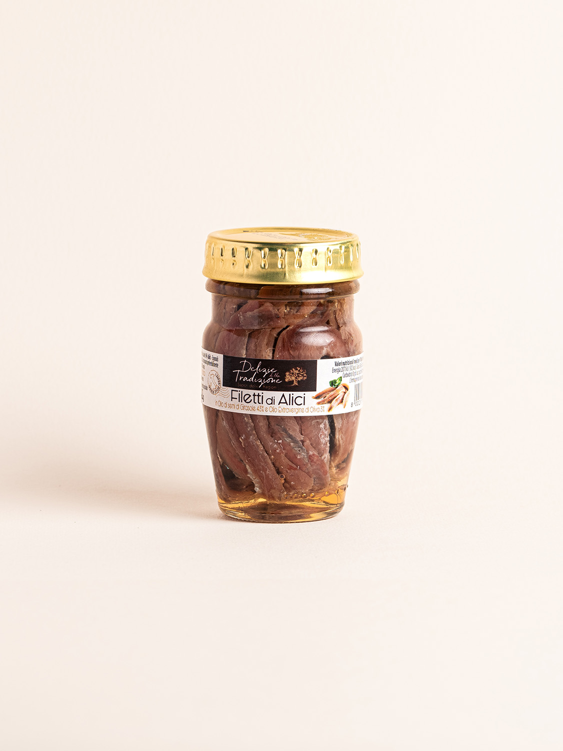 - Ingredienti: filetti di alici, olio di girasole, sale