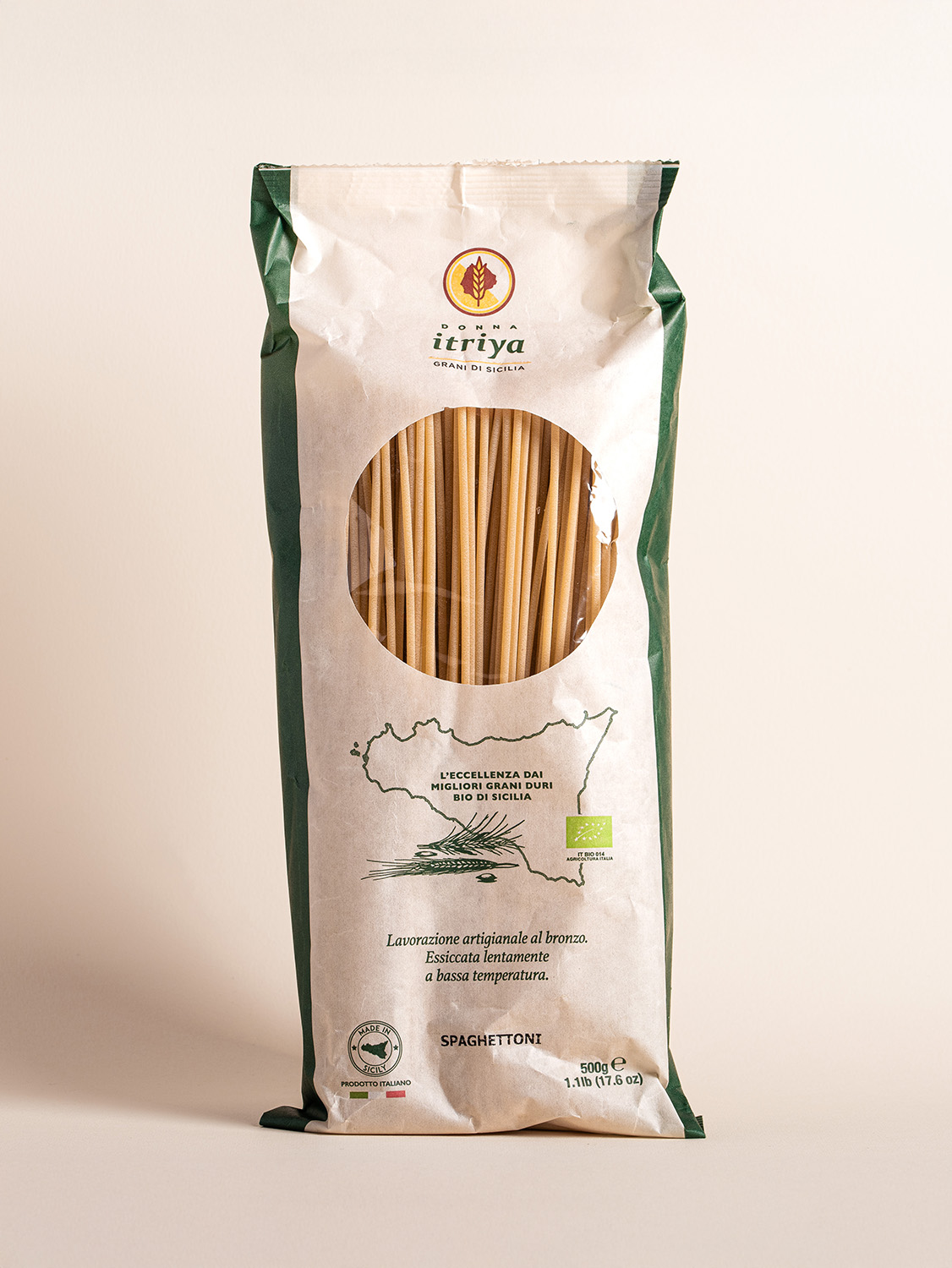I Spaghettoni Donna Itriya sono una pasta biologica di alta qualità, prodotta con semola di grano duro italiano certificato biologico. Lavorati con metodi artigianali e trafilati al bronzo, offrono una superficie ruvida che trattiene perfettamente i condimenti. La lenta essiccazione a bassa temperatura preserva aroma, gusto e consistenza, garantendo una pasta sana, nutriente e dal sapore autentico.