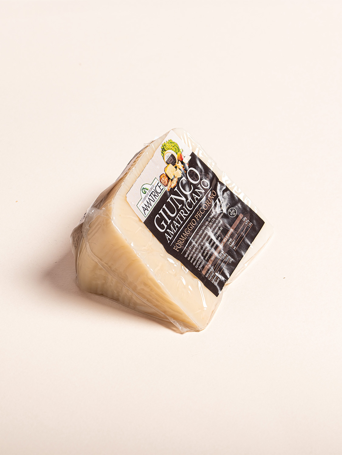 Il Giunco Amatriciano del Caseificio di Amatrice è un formaggio pecorino artigianale prodotto con latte ovino 100% italiano, secondo la tradizione casearia dei monti reatini. Prende il nome dal metodo di stagionatura in fascere di giunco, che dona alla crosta il tipico motivo intrecciato e contribuisce a sviluppare profumi intensi e un gusto deciso ma armonico. La pasta, compatta e leggermente friabile, rivela un sapore autentico che racchiude tutta la genuinità dell’Amatrice rurale.