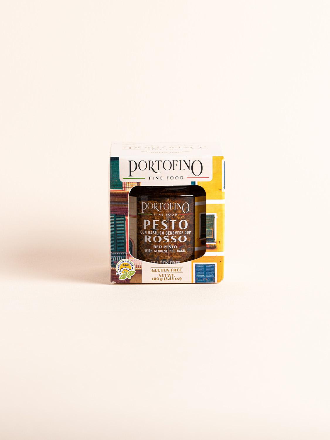 Pesto Rosso 100 g – Portofino: salsa artigianale con pomodori secchi, basilico Genovese DOP e un tocco piccante.