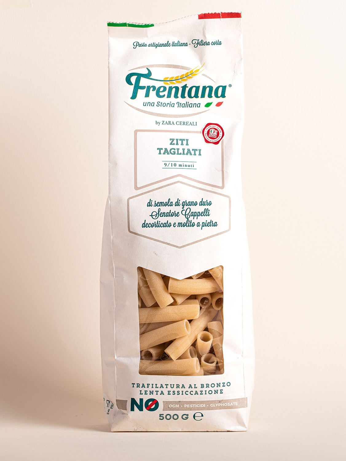 Ziti tagliati artigianali 500 g – Frentana: grano duro Senatore Cappelli, lenta essiccazione, superficie ruvida, perfetti per paste al forno e sughi tradizionali.